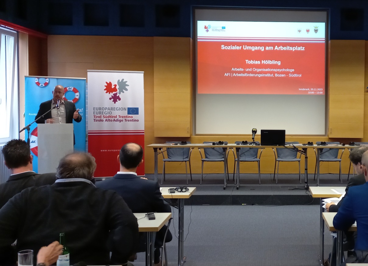 Durante l’incontro si parlerà dell’importanza delle interazioni sociali, positive e negative, sul posto di lavoro: da un lato c’è il supporto sociale, dall’altro discriminazioni, insulti e mobbing. “È scientificamente provato – afferma il ricercatore IPL Tobias Hölbling – che a un clima positivo corrisponde una migliore performance e un minore assenteismo“. Parte numero quattro della serie di studi Euregio sulle condizioni del lavoro (EWCS).